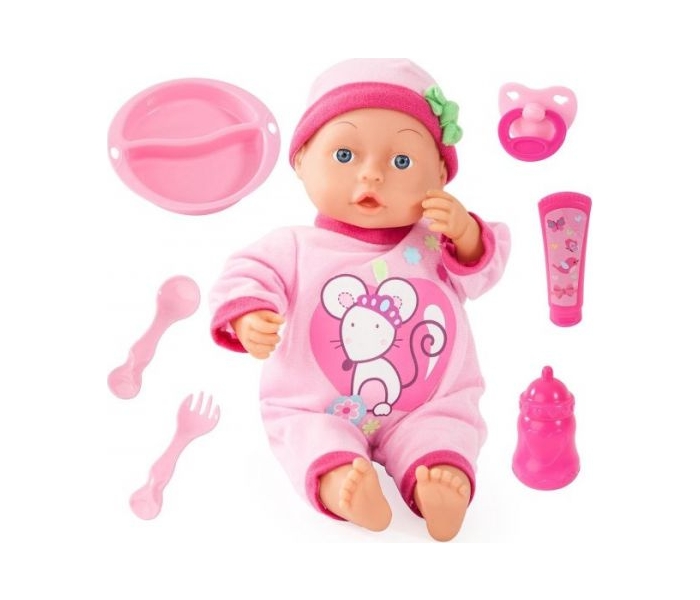 - Kada plače možeš je umiriti cuclom koja se takodje nalazi u setu.